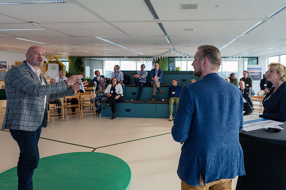Na de aftrap met een feestelijk gebakje openden Lisa van der Heijden en Yvonne Kemmerling het programma en vanuit gaststad Almere en de Green Innovation Hub heette Danny Frietman ons (mede namens wethouder Maaike Veeningen) welkom.
